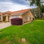 As you make your way through the home, the living room beckons with its warm ambiance. Imagine cozy evenings by the gas fireplace, adorned with a beautiful tile surround. The closet desk area provides a convenient workspace, and the crown molding and recessed lighting add a touch of sophistication. A bonus room offers several possibilities, whether you envision it as a den, a cozy TV room, or a creative space, it’s yours to transform and make your own. The large master bedroom is a tranquil sanctuary, offering sweeping views of the golf course. Wake up to the gentle sounds of nature and start your day feeling inspired. The master bathroom has been meticulously remodeled, showcasing a spacious shower with a bench and two showerheads, dual vanities with leathered granite counters, a privacy toilet area, and a large walk-in closet designed by California Closets. It’s a sanctuary of relaxation and indulgence. You’ll find wood floors in the hallway, hall bathroom, and master bedroom, adding warmth and charm. The house is equipped with a leased solar system, ensuring energy efficiency and reducing your environmental footprint. The exterior delights with its brick walkway, inviting front porch, and charming back patio. Embrace the California sunshine and create lasting memories in your outdoor oasis.